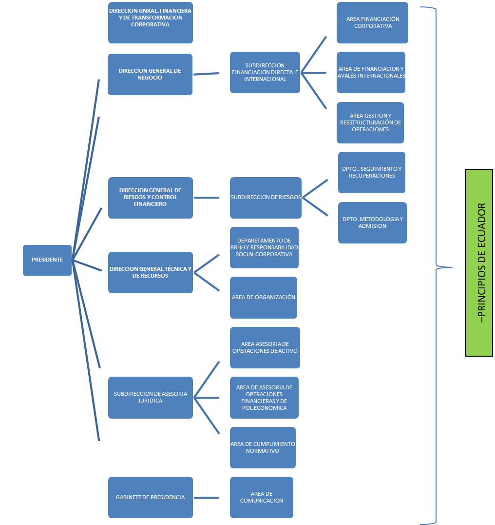 El ICO atendiendo a sus valores y a su misión de impulsar una economía más sostenible, se adhiere, en octubre de 2016, a los Principios de Ecuador, con la intención de mejorar su sistema de gestión de riesgos de los grandes proyectos de financiación y con el fin identificar y mitigar los posibles impactos negativos sobre el entorno, las personas y el clima, que estos proyectos pudiesen ocasionar.
