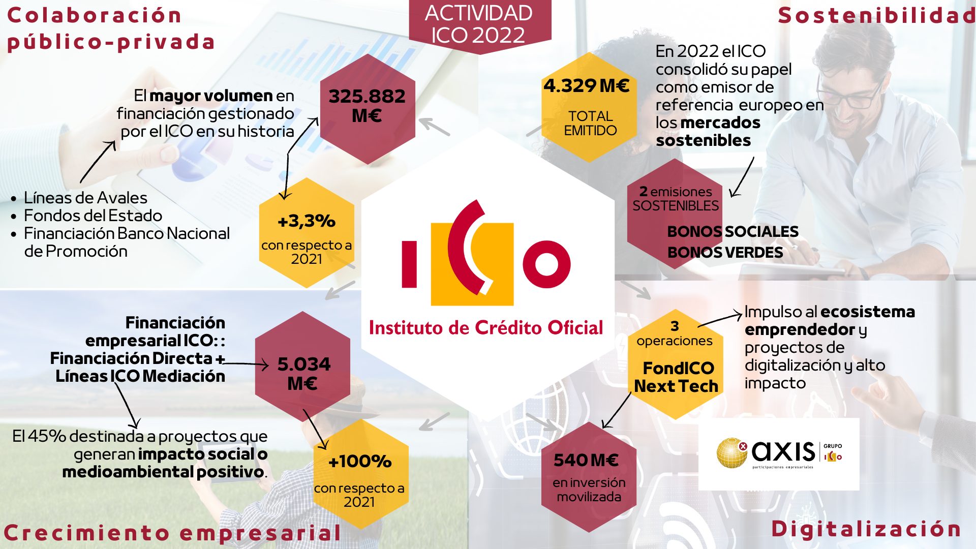 El Instituto de Crédito Oficial (ICO) con su actividad ha contribuido a canalizar en 2024 más de 11.100 millones de euros en financiación hacia autónomos, pymes y empresas para promover su crecimiento y el desarrollo de sus proyectos.
